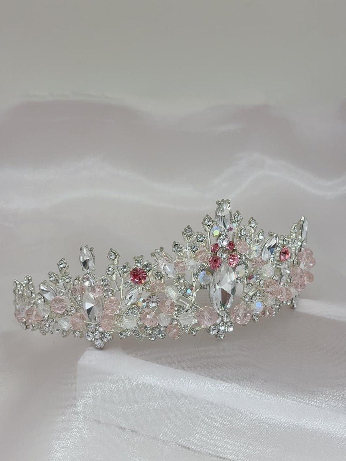 Corona en base plateada y dorada, decorada con cristales azules y color Crystal, logrando un diseño sofisticado y lleno de brillo.Ideal para realzar looks especiales y momentos inolvidables ✨Obs.: La primera imagen es solo una referencia del producto.